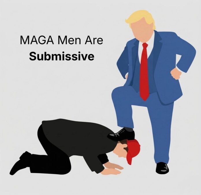MAGA men are submissive. They have to be submissive in order to be MAGA. If we leave behind the theatrics of the alpha patriot male and their need to impose dominance over others, we are left with a person who is desperate to please, belong, and to be told how to feel and how to think.